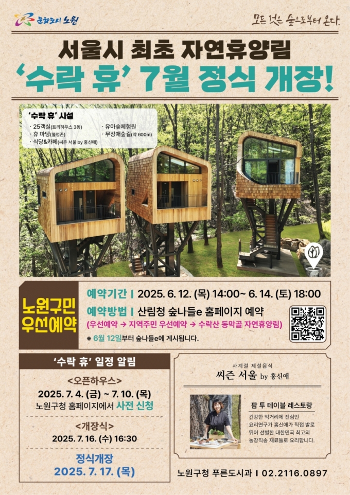 서울 노원구 수락산 동막골에 위치한 서울 최초의 자연휴양림 콘셉트 숙소입니다.