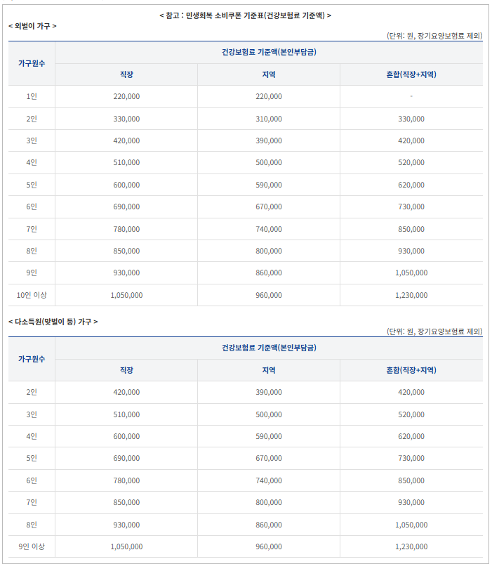소득 하위 90%에 대한 건강보험료 기준선인 ‘민생회복 소비쿠폰 기준표’를 확인하시면 됩니다.
