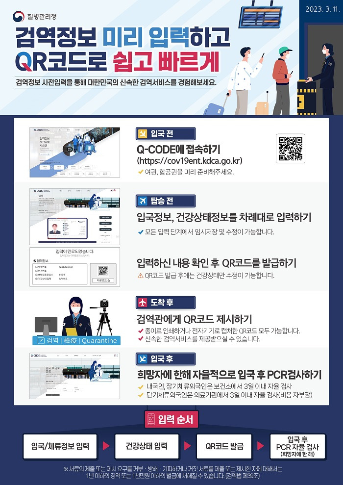 특히 기내에서 작성하는 건강상태 질문서와 Q-CODE 사전 등록이 핵심인데요.