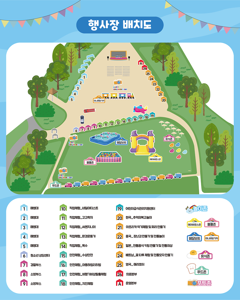 - 놀이존: 에어바운스, 미니 레일기차, 볼풀장, 페달보트