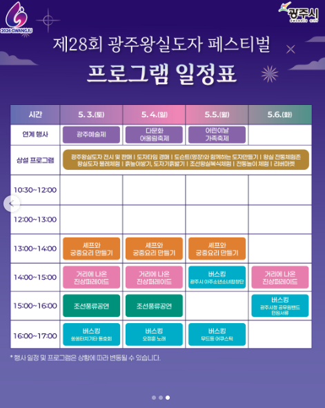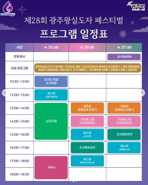 📅 제28회 광주왕실도자페스티벌 프로그램 일정