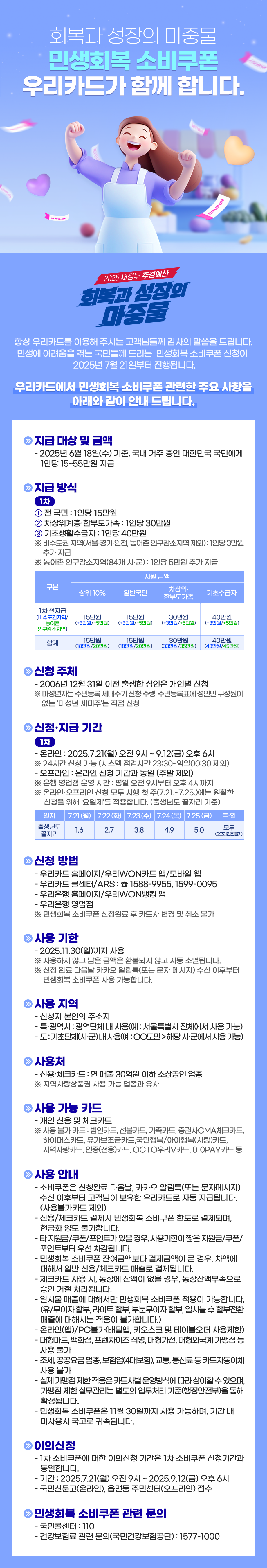 [2025 민생회복 소비쿠폰] 우리카드로 받는 방법 총정리! 대상, 금액, 신청법까지