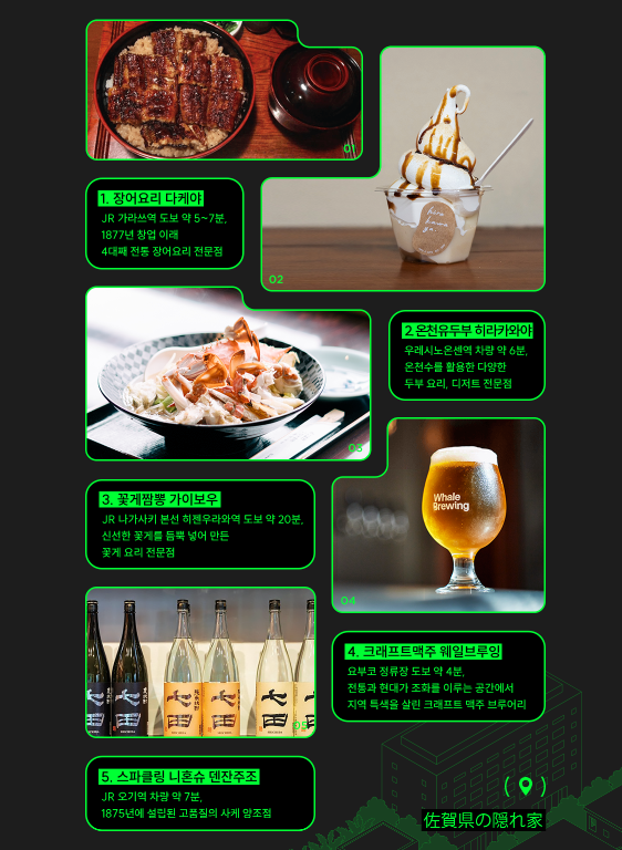 - 대중교통: 가라쓰역 하차 → 도보 5–7분