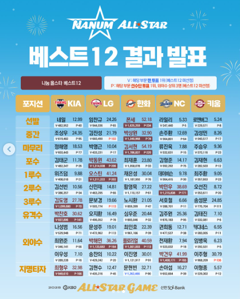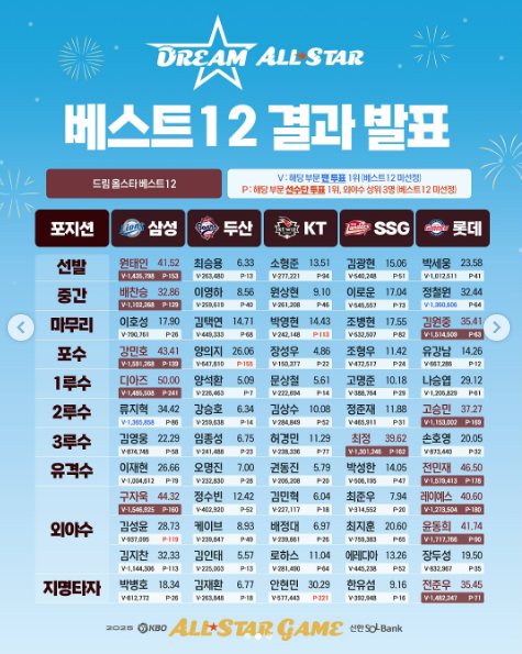 🏆 2025 KBO 올스타 올스타전 포지션별 1위 선수 (팬 득표 기준)